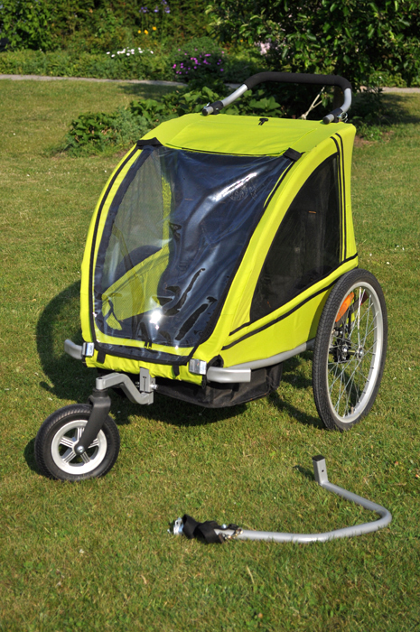 自転車で牽引。手で押す。の2通りに使えます。 我が家の立地を良く把握しないまま、地元のkvickly(スーパーマーケット)で去年買いましたが、地理的条件により使用を断念。 一年間、倉庫で眠っていただけのほぼ新品同様です。 置いている間にさびの出てしまったところが一部ありますが、使用には問題ありません。<ページトップへ> |