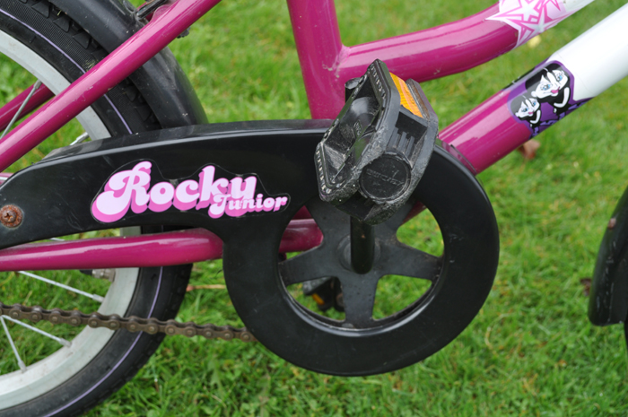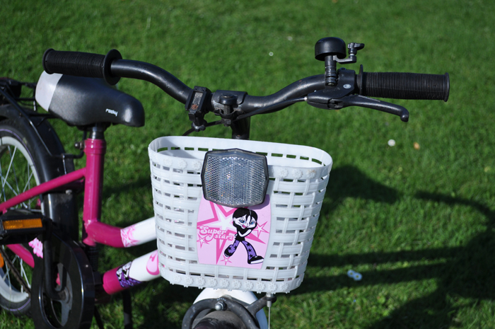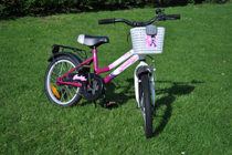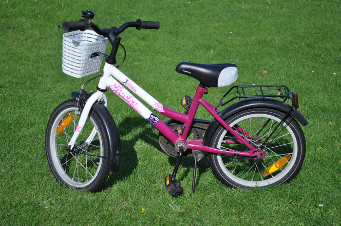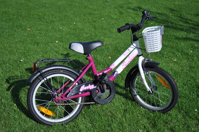 2〜3ヶ月前に中古で手に入れた自転車です。 インチ数などはよくわかりませんが、タイヤの直径は39cm、サドルの高さは54cmくらいです。 汚れや傷などたくさんありますが、自転車として乗る分にはまったく問題ありません。 6才の娘の大のお気に入りですが、彼女には少し小さめです。<ページトップへ> |