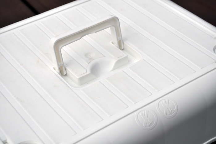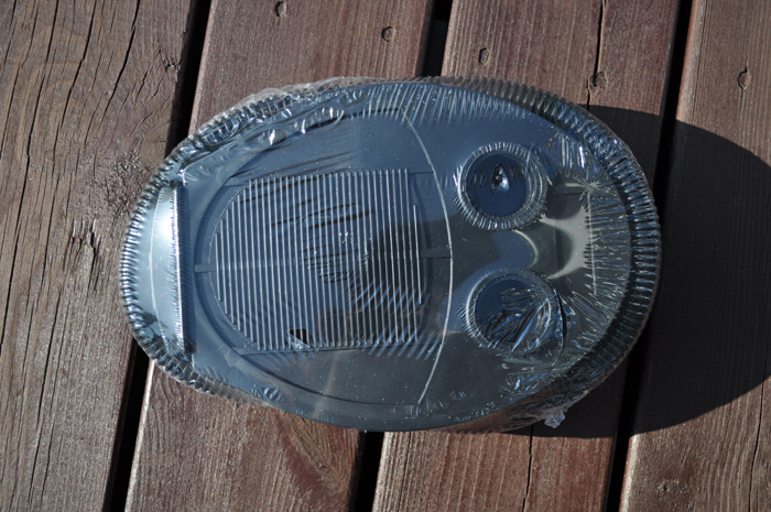 本体は手押し用の前輪を着けたところ。 上面には中をうかがうための窓もあり。 |