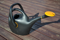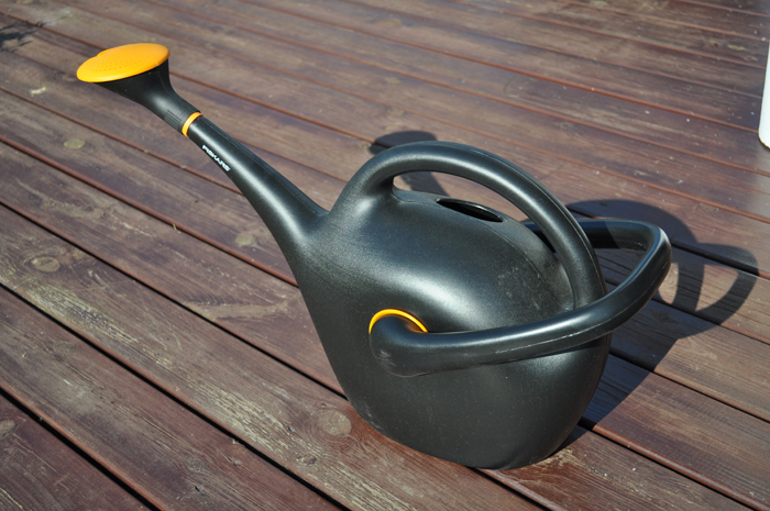 ちょっと大きめのジョウロです。 結局あまり必要ではなくてほとんど使っていません。きれいです。 けっこう高かったのですが、正確にはちょっと失念。 先の部分はちょっと変わっていて、回すと水の出方が変わるようですが説明などはありません。<ページトップへ> |