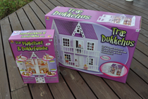 ハウスのキットと、家具、人形の詰め合わせの2箱分です。 合わせて日本円で7〜8千円した記憶がありますが、正確には失念。 そのわりにあまり質の高いものではありませんが、子供は充分楽しんだようです。 幅460×奥行400×高さ570mm。<ページトップへ> |