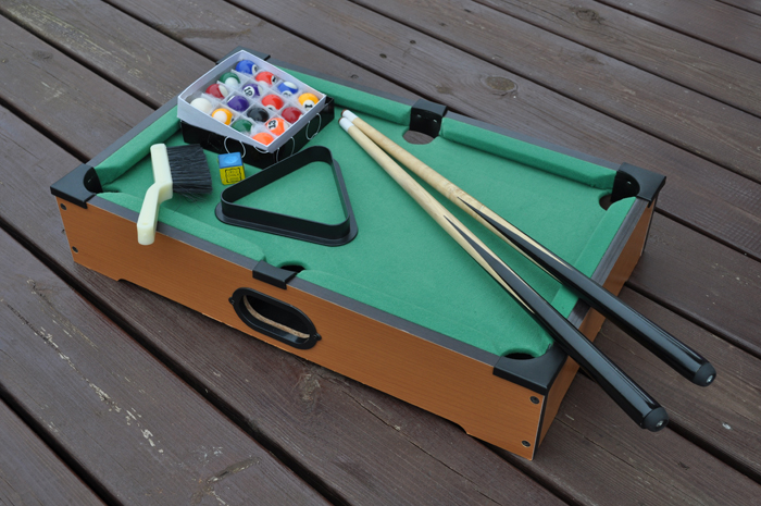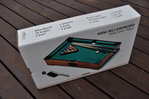 雰囲気だけは本物っぽい?ミニ・ビリヤード・ゲームです。 台、玉16個(白玉含む)、キュー2本、三角枠、チョーク、ブラシ。 台は少し汚れがあります。 台のサイズ、幅520×奥行315×高さ100mm。<ページトップへ> |