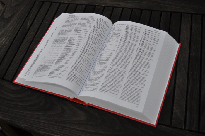 デンマークでは非常にポピュラーな「赤い辞書」です。 結局ほとんど使わなかったので比較的きれいです。 開き方にすこしクセがついてしまっています。<ページトップへ> |