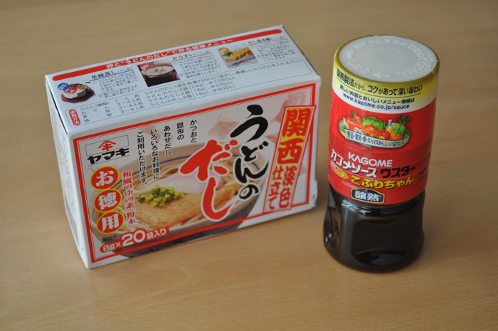 | 【売約済】TAK! 食料品-A 20kr カゴメソース ウスターこぶりちゃん、ヤマキ うどんのだし 6g×20袋入り。<ページトップへ> |