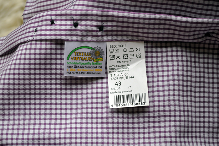 折り畳んで売っていたので、ちゃんと店員に相談してサイズをあわせてもらったはずなのに、 大きすぎて着られなかったという悲しいシャツです。とてもきれいで、サイズが合うなら自分で着たいのですが…。 サイズは43と記載されていますが、詳しくはタグの写真をご覧下さい。<ページトップへ> |